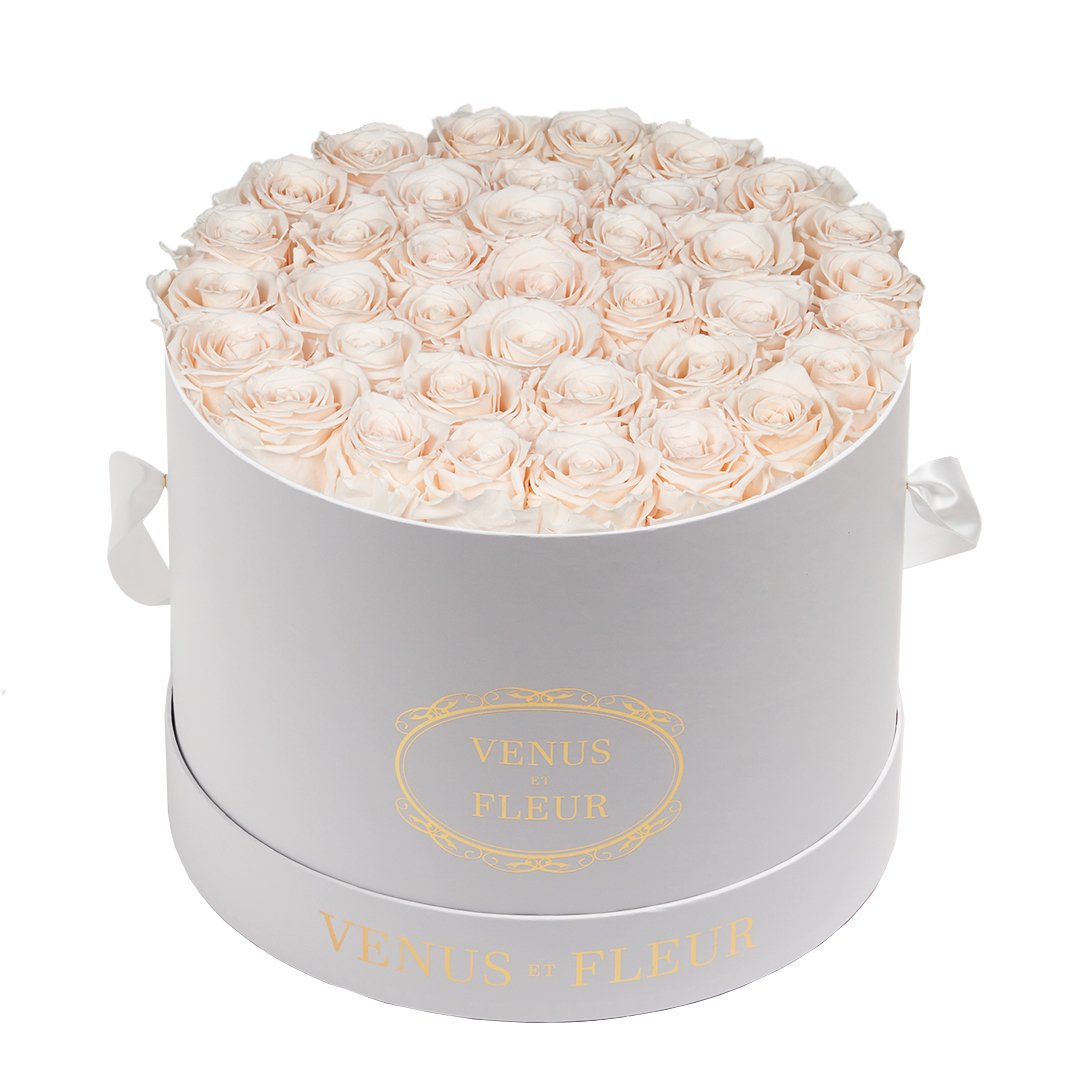 Add a touch of sweetness to your space with our Neapolitan-inspired floral arrangements that last a year or more. Satisfy your senses with a blend of delicate blooms in soft shades of pink, white, and nude.