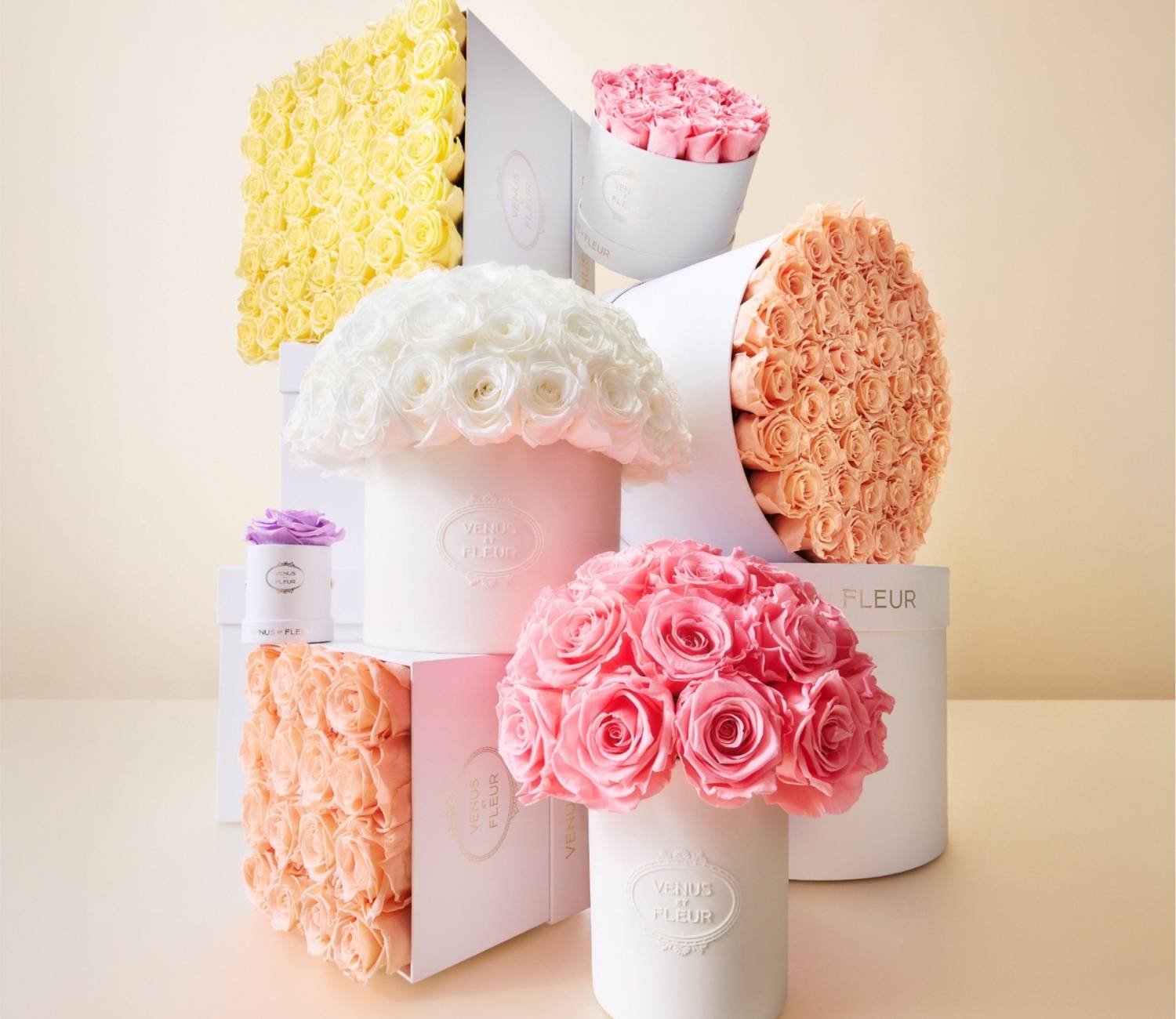 A fresh expression of the season. Our iconic Eternity® Roses appear in a palette of soft pastels and luminous tones, capturing the beauty of spring in full bloom. Each arrangement is crafted from real roses, expertly preserved to last a year—transforming fleeting moments into lasting elegance.