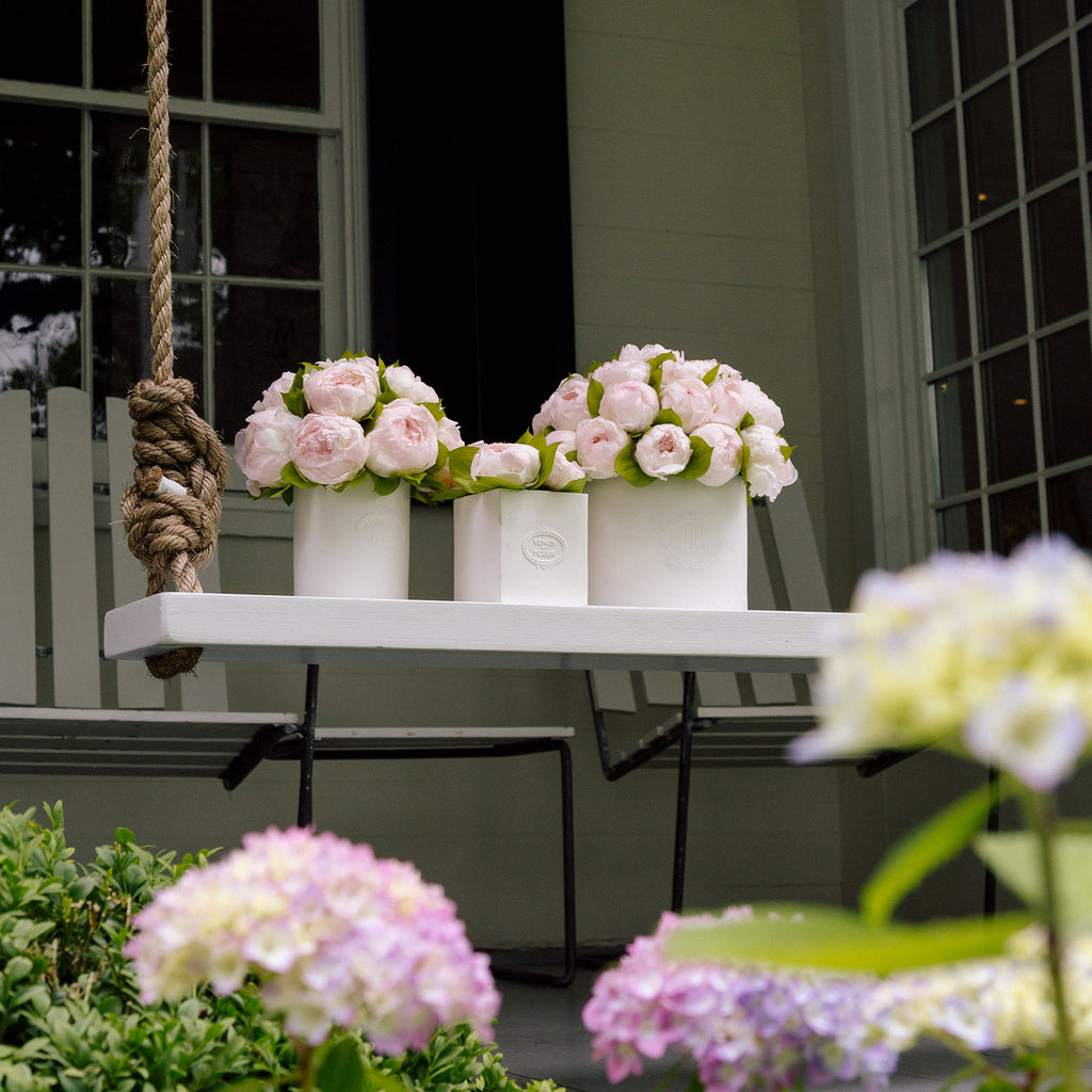 Exuding nobility, good fortune, and grace, peonies have a rich horticultural pedigree extending back over 1000 years. Their timeless beauty is enhanced by a handcrafted porcelain vase, and the peony flower's history as a royal favorite makes this arrangement an excellent gift for someone special.