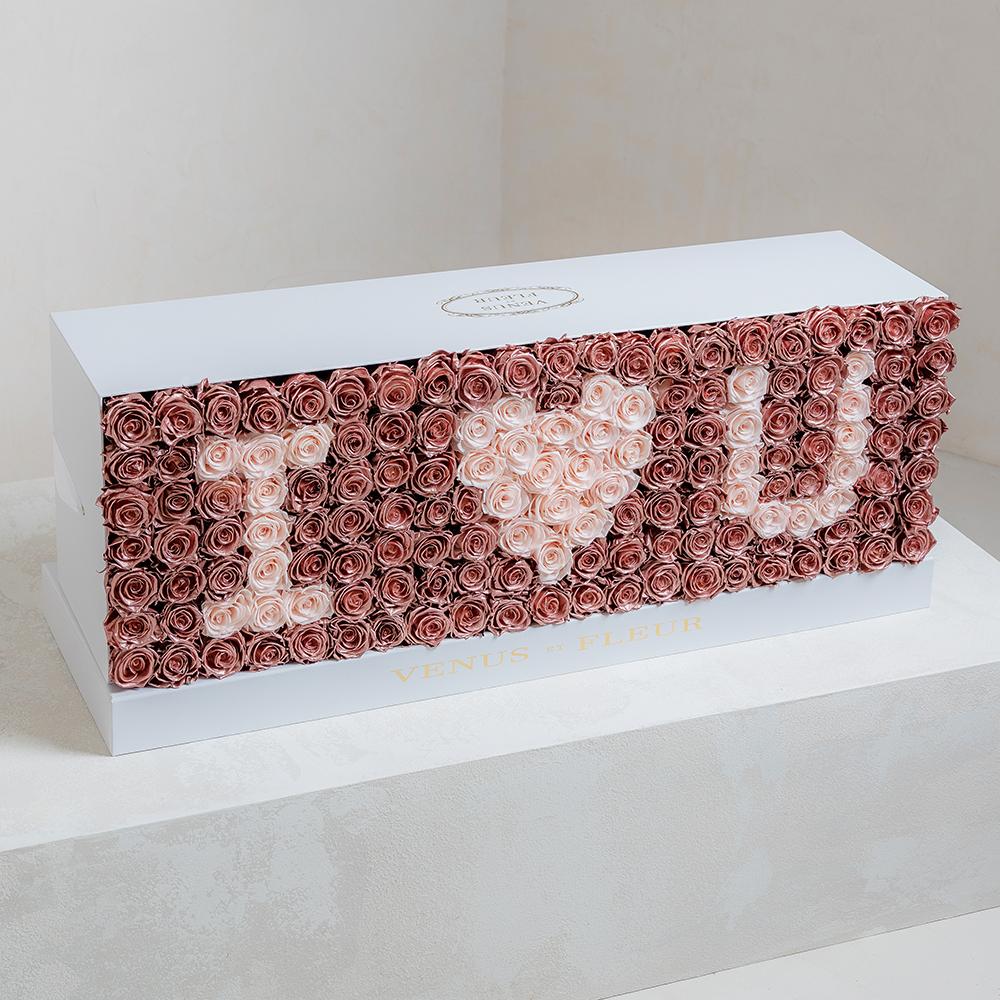 Our Grandiose Collection is the ultimate when it comes to luxury and abundance. Comprised of approximately 150 gorgeous Eternity Roses set in a square box, a Grandiose arrangement will serve as a proclamation of your eternal love in the most monumental and awe-inspiring way.