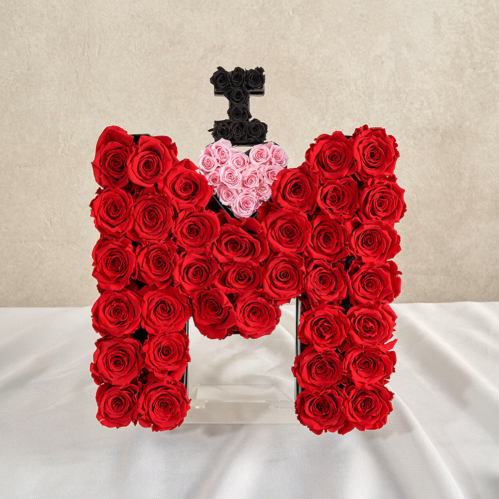 The Le Grand Letter M is a stunning floral arrangement filled with beautiful, fragrant eternity roses. Available in letters A-Z, Le Grand Letters are the perfect personal gift. Our floral letter M consists of real roses lasting at least a year and is fitting for all celebrations. For a more subtle gesture, select the Le Mini Letter M from the ever popular Letter Collection.
