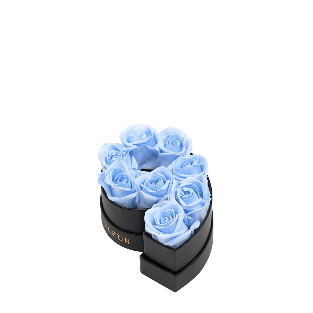Le Mini Number 9 features eternity roses in a '9' number-shaped black box inspired by a Parisian hat box. Create customized gifts when you mix and match numbers for personalized gifts or party favors. Similar to our popular mini flower letters, these mini flower numbers are perfect for celebrating birthdays, anniversaries, and other important milestones.