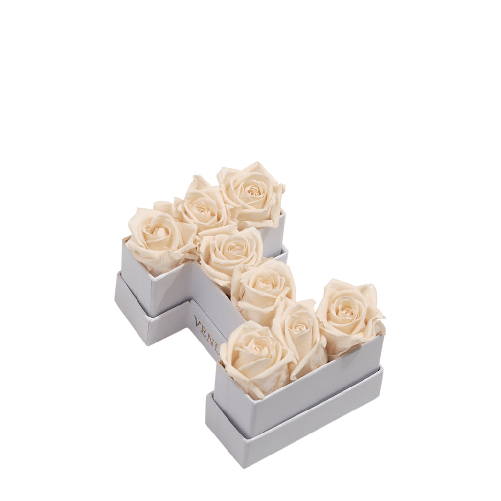 Le Mini Letter I is comprised of eternity® roses in an 'I' letter-shaped Parisian-inspired hatbox. Create customized gifts when you mix and match these forever flower letters to create initials, names, words, or phrases. This mini flower arrangement is the perfect personalized gift or party favor.