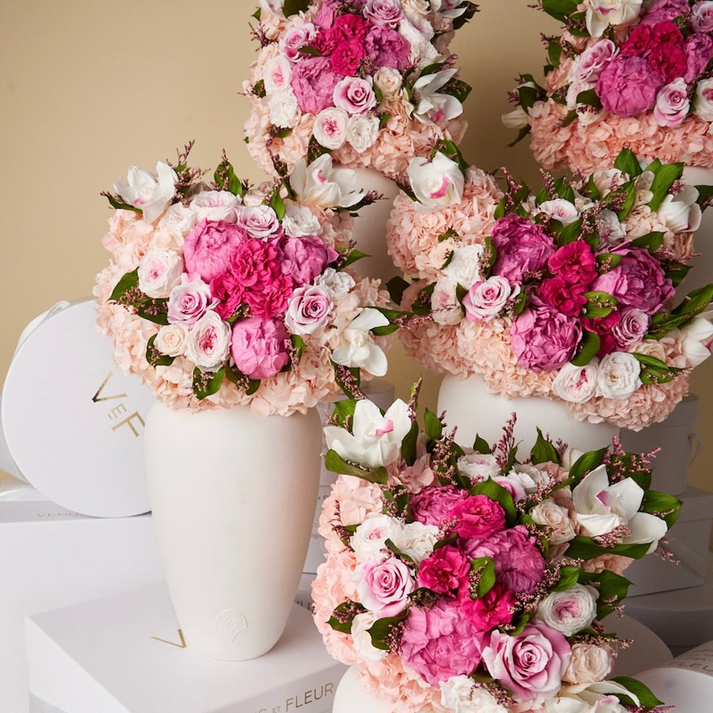 Available in limited quantities, Grand Venus Peony d’Amour is a monumental expression of romance and architectural elegance, inspired by the enduring artistry of Paris. Featuring our Pink Eternity® Peonies, grown exclusively for Venus et Fleur and released this Valentine’s Day in very limited quantities, alongside the allure of our new floral innovation, Eternity® Cymbidium Orchids, and a refined selection of Eternity® blooms—thoughtfully composed to create movement and presence.