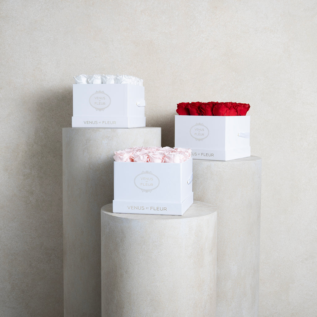 Thank you so much for your wonderful review! We're absolutely thrilled to hear that your Small Square arrived on time with flawless roses - that's exactly what we strive for with every delivery!