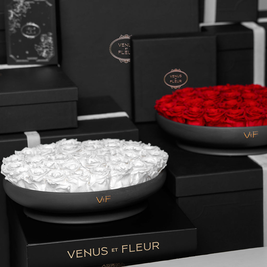 This arrangement features 31 Eternity® roses - our signature creation - hand-selected and hand-picked by the botanical experts at partner farms in Ecuador.
