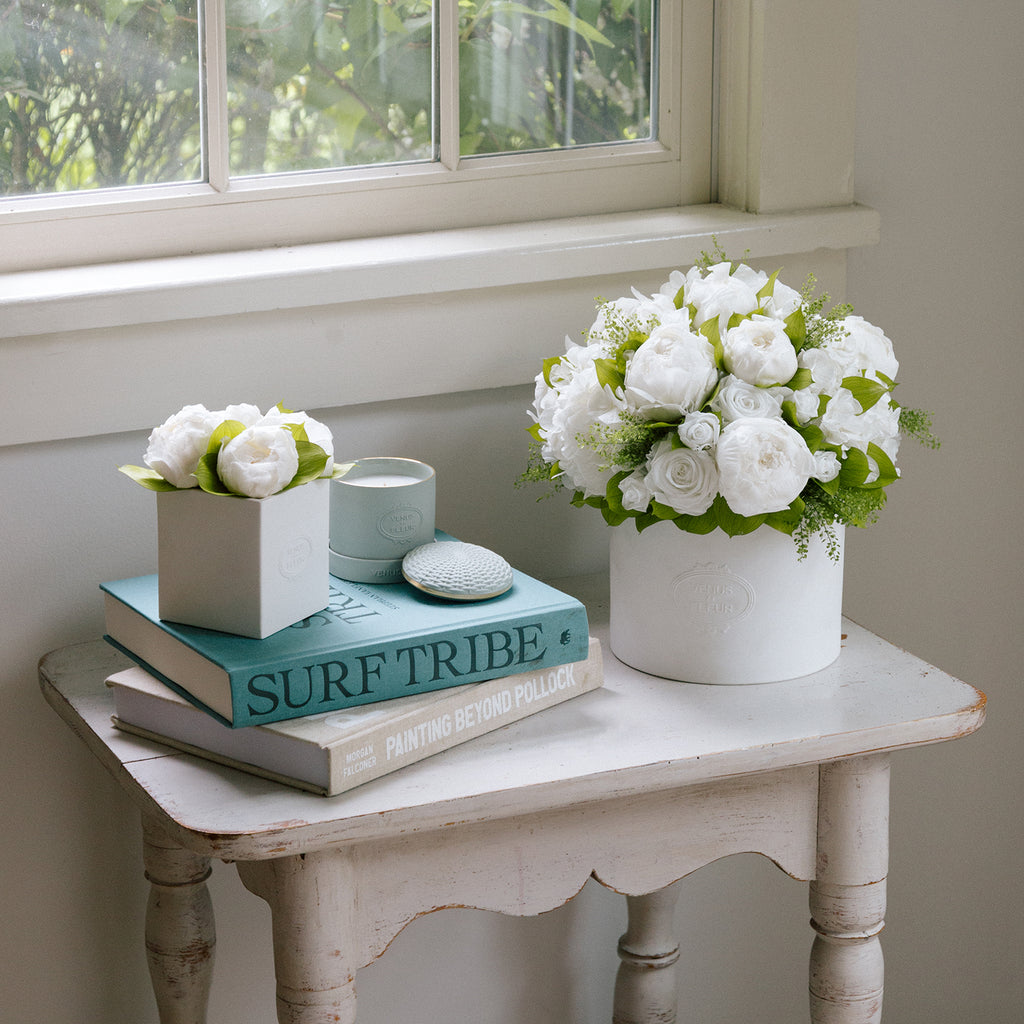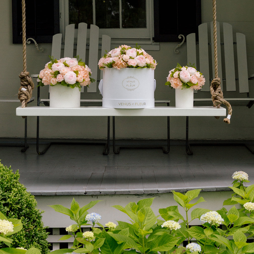 A symphony of craftsmanship that highlights the extravagance of the Eternity® Peony, exclusively grown for Venus et Fleur. This long-lasting arrangement combines our Eternity® Peonies, each one hand-selected in peak bloom and meticulously harvested by botanical experts at our partner farms in Japan, elegantly cradled alongside our signature Eternity Roses and Hydrangeas.Â